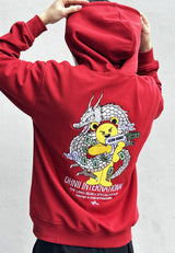 EMBROIDERED DRAGON BEAR HOODIE (MAROON) (LIMITED-EDITION)