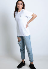 A classic cotton T-shirt embroidered with our Logomark. It looks particularly cool when paired with either jeans or jogger/short pants.