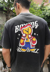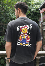 OVERSIZED BOXING SURVIVAL BEAR COTTON JERSEY TSHIRT (STONE WASH)