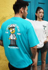OVERSIZED CAPTAIN BEAR (TURQUOISE ) COTTON JERSEY TSHIRT