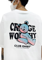 OVERSIZED CRINGE WORTHY BEAR (WHITE) COTTON JERSEY TSHIRT