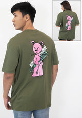 OVERSIZED INTERNATIONAL BEAR COTTON JERSEY TSHIRT (ARMY GREEN)