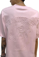 WATER-RESISTANCE: OVERSIZED 3D FEELING LUCKY HAUGHTY BEAR COTTON JERSEY TSHIRT (PINK)