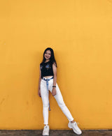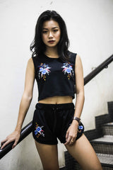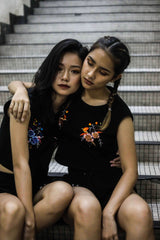 Ohnii's floral crop tops come with the best embroidery craftsmanship - this cotton crop top version is embroidered with a mix of floras such as forget-me-nots/ scorpion grasses which are believed to bring good fortune, true love and peace while lily-of-the-valley represents fierceness, happiness and purity. It looks particularly cool when paired with either jeans or jogger/short pants.