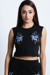 EMBROIDERED BLUE SCORPION LILY FLORAL Women CROP TOP