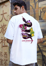 OVERSIZED DIY SNAKE HAUGHTY BEAR (WHITE) COTTON JERSEY TSHIRT