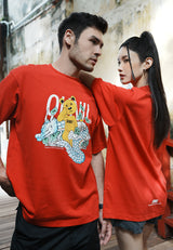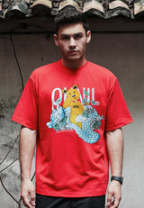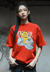 OVERSIZED DRAGON BEAR COTTON JERSEY TSHIRT (RED FRONT)