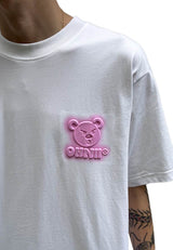 OVERSIZED 3D SITTING PINK HAUGHTY BEAR COTTON JERSEY TSHIRT (WHITE)