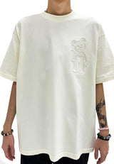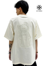 OVERSIZED 3D SPARKLING BEAR (BEIGE) COTTON JERSEY TSHIRT