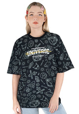 OVERSIZED ALL OVER ASTRONAUT BEAR COTTON JERSEY TSHIRT