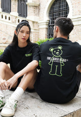 OVERSIZED EMBROIDERED GLOW IN THE DARK BEAR COTTON JERSEY TSHIRT
