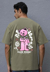 OVERSIZED FLOWER FALL GLOW IN THE DARK HAUGHTY BEAR (KHAKI) COTTON JERSEY TSHIRT