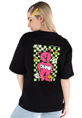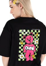 OVERSIZED CHECKERED FULL BEAR COTTON JERSEY TSHIRT