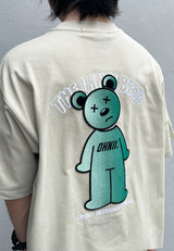 OVERSIZED GRADIENT EMBROIDERED GREEN BEAR (LIGHT GREEN) COTTON JERSEY TSHIRT