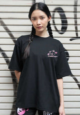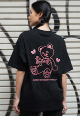 OVERSIZED HEAT-SENSITIVE HEART BROKEN HAUGHTY BEAR (BLACK) COTTON JERSEY TSHIRT