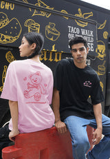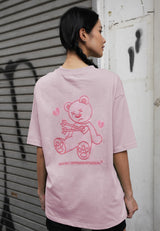OVERSIZED HEAT-SENSITIVE HEART BROKEN HAUGHTY BEAR (PINK) COTTON JERSEY TSHIRT