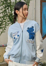 OVERSIZED CLUB OHNII HAUGHTY BEAR BASEBALL JACKET (BLUE)