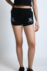 EMBROIDERED BLUE SCORPION LILY FLORAL Women SHORTS