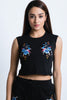 EMBROIDERED BLUE SCORPION LILY FLORAL Women CROP TOP