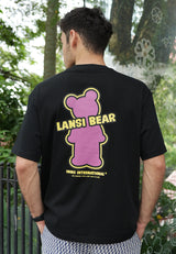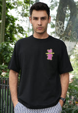OVERSIZED GLOW IN THE DARK YELLOW BEAR COTTON JERSEY TSHIRT (BLACK)