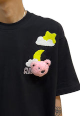 OVERSIZED MOON PLUSH TOY HAUGHTY BEAR COTTON JERSEY TSHIRT (BLACK)