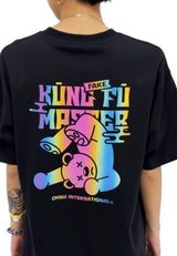 OVERSIZED RAINBOW KUNGFU BEAR UPSIDE DOWN (BLACK) COTTON JERSEY TSHIRT