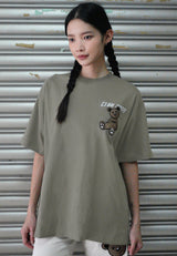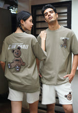 OVERSIZED SITTING HAUGHTY BEAR (KHAKI) COTTON JERSEY TSHIRT