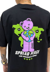 OVERSIZED SPREAD PEACE BEAR (BLACK) COTTON JERSEY TSHIRT